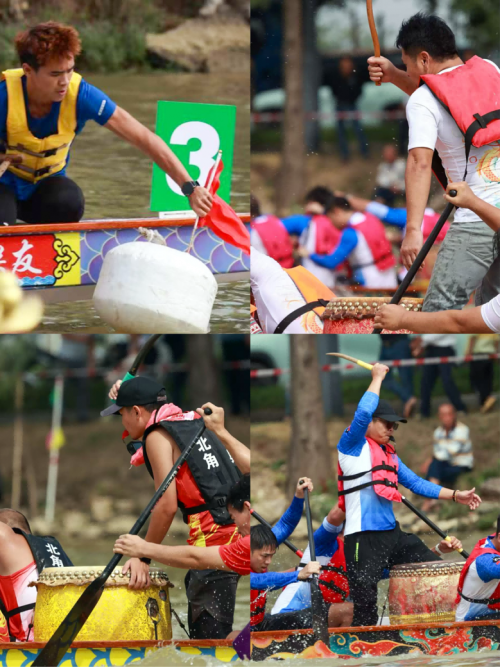 伴随着发令枪响,龙舟竞渡正式开启。选手们肩并肩、手同步,奋力挥桨的动作整齐划一,飞溅的浪花与震天的号子交织,勾勒出 “百桨击水,龙舟竞渡”的壮阔图景。从午后到黄昏,33支队伍轮番上阵,在碧波之上展开激烈角逐,用速度与力量诠释着龙舟精神的时代内涵。