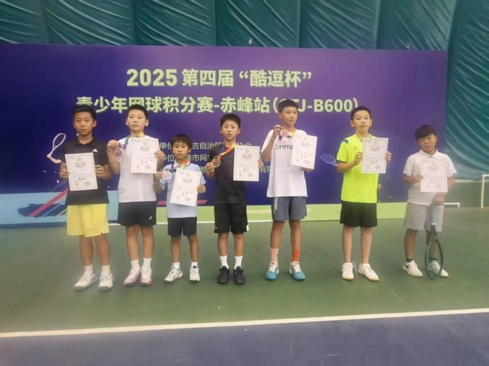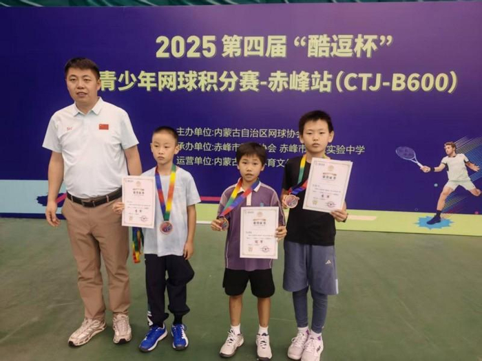 2025年9月13至14日在内蒙古自治区赤峰市举办的第四届“酷逗杯”青少年网球积分赛第六站赤峰站(CTJ-B600)圆满落幕。比赛由内蒙古自治区网球协会主办、赤峰市网球协会、赤峰市第二实验中学承办、尤尼克斯(上海)体育用品有限公司赞助支持。